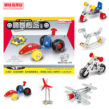 钢铁指挥官DIY3D金属合金拼装车模型亲子玩具F1风车飞机木马等