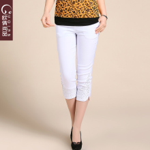 妈妈装春夏修身打底裤外穿七分裤大码中老年女裤弹力高腰小脚裤子