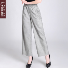 棉麻中年妈妈装松紧腰大码中老年人女装九分裤夏季亚麻休闲长裤子