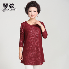 中老年女装长袖连衣裙春秋中年女上衣大码妈妈装蕾丝打底衫中长款