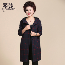 中老年女装秋装格子外套中长款宽松中年人上衣秋冬妈妈装风衣大码