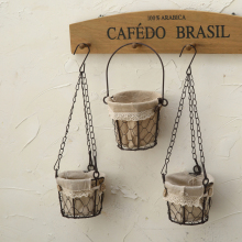 创意花盆复古做旧挂壁花艺铁丝框麻布收纳挂钩式吊篮软装家居饰品