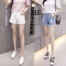 2017夏季新款高腰破洞牛仔短裤女毛边宽松a字阔腿韩版百搭热裤薄