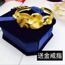 欧币久不掉色越南沙金手镯 女士双花款欧币镀金镯子婚庆新娘饰品