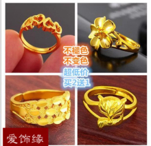 不掉色越南沙金活口戒指欧币金欧美夸张女款大戒24K镀金大花戒指