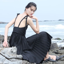 SYUSYUHAN设计 绑带性感蝴蝶结百褶吊带露背连衣裙小黑裙