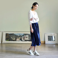 涂月秋季欧美休闲丝绒半身裙女简约中长款气质文艺风琴细褶百褶裙