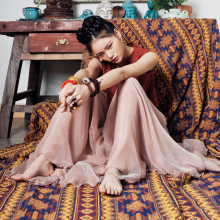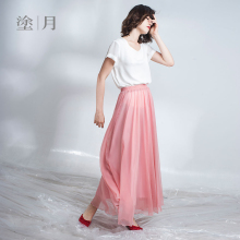 涂月原创波西米亚雪纺半身裙高腰纱裙大摆中长款裸色半身长裙女夏