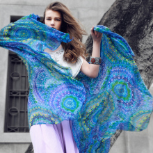 涂月春夏波西米亚两用披肩桑蚕丝围巾 长款真丝印花时尚丝巾