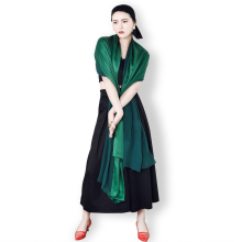 涂月真丝丝巾女长款绿色桑蚕丝礼服大披肩两用外搭旗袍围巾春