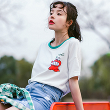 2017夏季韩版卡通印花短袖T恤女学生白色宽松百搭上衣女半袖可爱