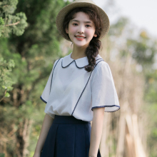 2017夏季新款韩版潮娃娃领宽松百搭学生衬衫女短袖小清新上衣韩范