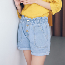 2017夏季新款韩版潮翻边单排扣牛仔裤女弹力腰学生短裤子显瘦春季