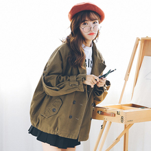 春季韩版女装学生风衣外套女休闲宽松学院风工装女原宿风连帽春秋