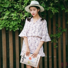2017夏季新款韩版短袖宽松显瘦雪纺连体裤裙女小个子短裙碎花学生