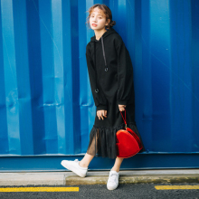 2017春季新款韩版女装中长款连衣裙女春秋长袖打底裙宽松休闲学生