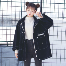 2017夏季新款韩版原宿风BF牛仔风衣外套女学生中长款宽松休闲春秋