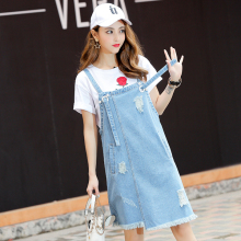 2017夏季新款韩版学院风牛仔背带裙女中长款复古破洞学生连衣裙女