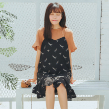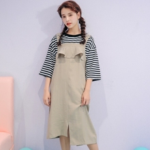 2017夏季新款韩版潮荷叶边背带裙女中长款学生宽松连衣裙女不规则