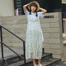 2017春夏季新款韩版潮宽松百搭碎花连衣裙女长款雪纺吊带裙子学生