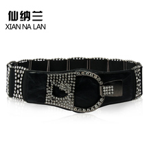 韩版百搭配连衣裙装饰金属水钻镶嵌女士松紧宽腰带时尚大码宽腰封