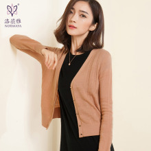 洛薇雅2017春季新款V领羊毛衫女开衫纯色宽松长袖格纹针织女外套