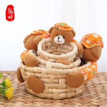 包邮新款草编收纳篮储物篮小篮子小熊草编田园风格一套三个