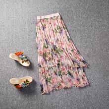 欧洲站夏装女2017新款潮欧货森系旧粉色印花飘逸大摆真丝半身长裙