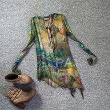 2017春装欧货潮涅槃图案性感半透修身长袖打底衫超薄真丝印花小衫