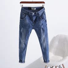 宽松牛仔裤女bf 韩版春季破洞乞丐显瘦九分裤百搭小脚哈伦裤大码