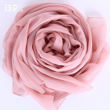 御丝娘2017韩版春夏女真丝丝巾桑蚕丝超长款围巾防晒披肩纯色嫣红