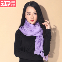 2017御丝娘真丝丝巾长款桑蚕丝围巾披肩两用纯色真丝围巾女葡萄紫