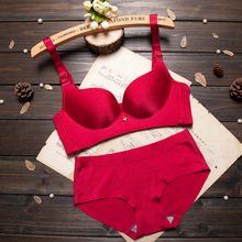 性感一片式无痕小胸厚杯聚拢调整型简约舒适文胸套装