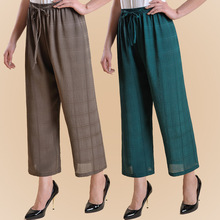 妈妈装新款七分裤 纯色休闲直筒松紧裤中老年女装40-49岁雪纺裤子