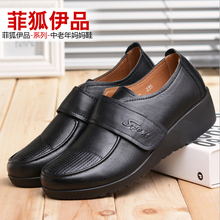 菲狐伊品妈妈鞋真皮软底单鞋坡跟魔术贴中年女鞋休闲2016春季新款