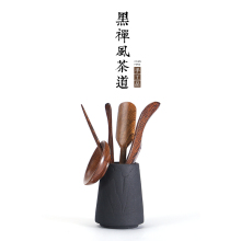 洞藏楼 功夫茶具配件套装整套黑檀实木陶瓷零配组合 茶道六君子
