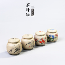 梅兰竹菊古朴德化陶瓷小号迷你粗陶茶叶罐手工密封储物罐茶道配件