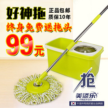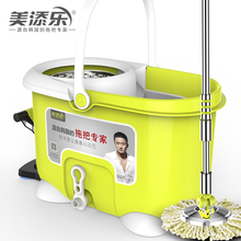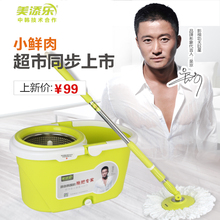美添乐不锈钢杆双驱动旋转拖把 手压洗涤自动脱水拖把水立方特价