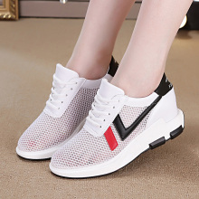 2017夏季内增高网纱鞋女厚底透气系带网鞋韩版平底学生松糕休闲鞋