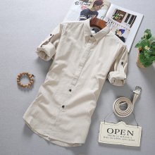 2017新款七分袖衬衫男士韩版修身潮流男装青少年学生休闲短袖衬衣