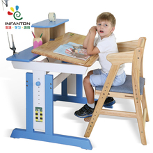 Infanton蓝色实木儿童学习桌椅可升降学生写字桌台儿童书桌椅套装