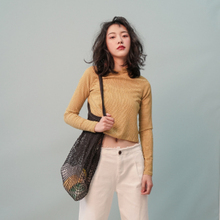 SUPERSCAPE素泊不规则半高领修身套头长袖T恤条纹打底衫女