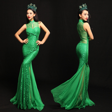 想想2017中国风改良旗袍 长款敬酒服车模年会礼服性感连衣裙H0789
