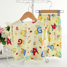 夏季儿童短袖棉绸睡衣套装男童男孩女童小女生家居服绵绸童装夏装