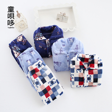 法兰绒儿童睡衣冬季加厚款男童女童女孩小孩宝宝家居服珊瑚绒套装