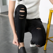 夏季韩版薄款破洞女打底裤外穿女秋高腰九分紧身显瘦小脚2017新款