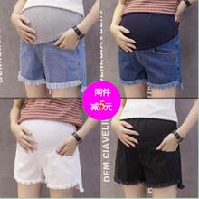 孕妇牛仔短裤夏外穿破洞薄款打底裤宽松大码托腹白色裤子潮妈夏装