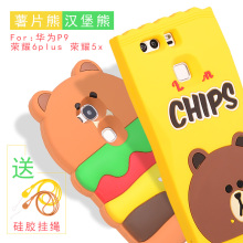 华为荣耀8手机壳女款麦芒5保护套硅胶防摔挂绳可爱汉堡熊卡通全包