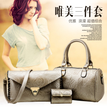 圣茵娜2016新款时尚压花子母包玫瑰花纹三件套女包单肩斜跨手提包