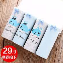 4条装内裤女纯棉裆部100%棉学生卡通中腰棉质面料薄款少女三角裤